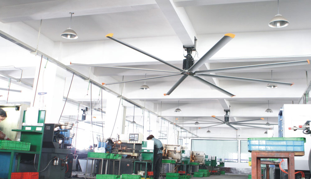 大型工業吊扇直徑達5-7米,功率為1.5千瓦,風力柔和、無噪音,能滿足200-500平方米的室內降溫、通風等要求。